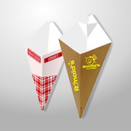Le scatole CONO FRITTI sono stampate a colori con inchiostri atossici su carta certificata alimentare.Ideali per asporto e take away di patatine, pizza fritta, fritto di pesce, mazzarelline eccSono disponibili in 4 diverse misure:- SMALL misura 150x70x210 mm- MEDIUM misura 175x80x250 mm- BIG misura 200x90x290 mm- SUPER BIG 245x105x350 mmRichiedi il preventivo per qualsiasi quantità che potrebbe interessarti!